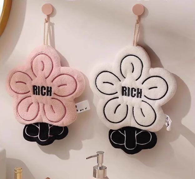Mjukt koralltyg med vacker broderad blomdesign - perfekt för kök eller badrum!