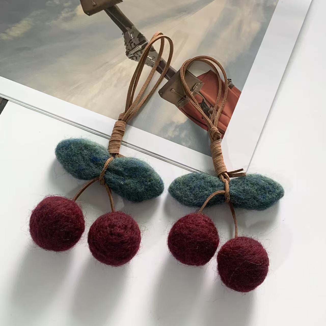 Lekfull och charmig körsbär-hänge i mjuk filt. Lätt och bekväm att bära!