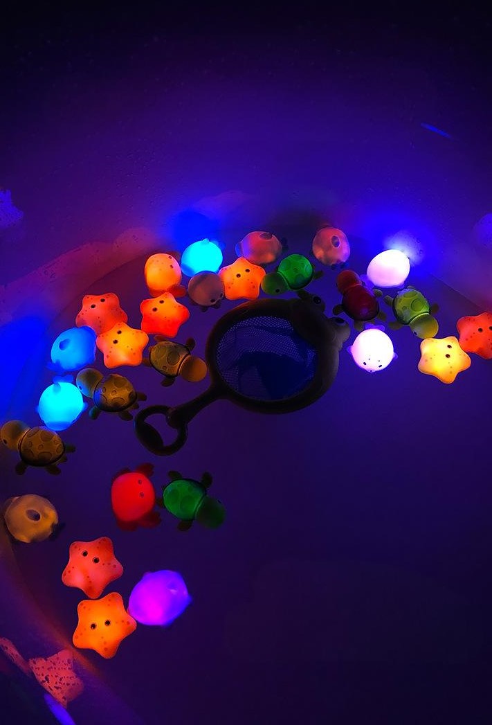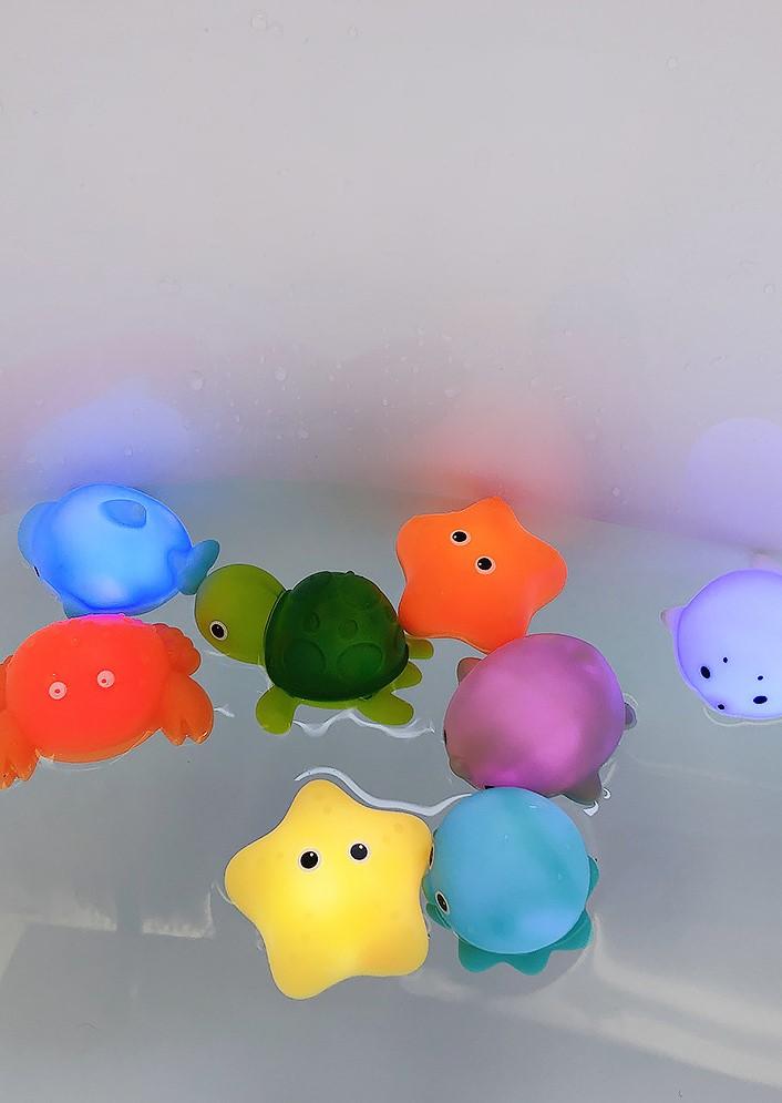 Söta LED-badleksaker som lyser upp när de kommer i kontakt med vatten och skapar en magisk badupplevelse för bebisar och småbarn!