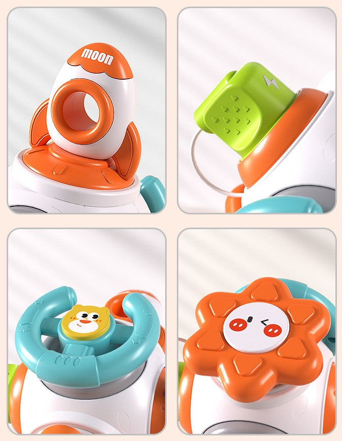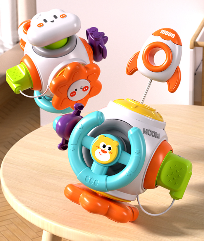 Denna söta raket bollkastare leksak håller små händer upptagna med sin färgglada design och interaktiva funktioner. Barn kan trycka, snurra och vrida delarna för att bygga finmotorik, hand-öga-koordination och fantasi.